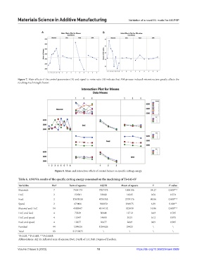 Figure 8. Mean and interaction effects of control factors on specific cutting energy.