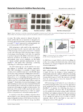 (B and C) Real-time cured layers and green parts after an ultraviolet irradiation (outside powder bed) .