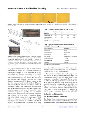 (mm); (D) dimensional specifications of the tensile samples (mm); Substrate Ti-6Al-4V