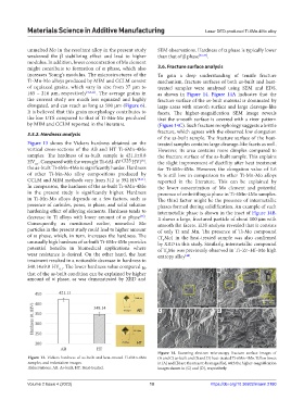 samples. The hardness of as-built sample is 421.1±8.8 the fracture surface of the as-built sample. This explains