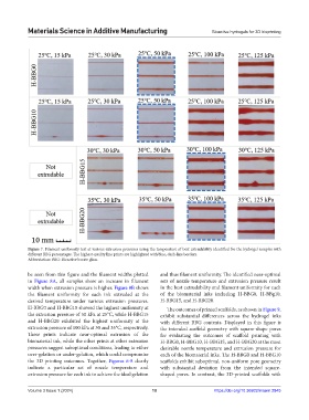 width when extrusion pressure is higher. Figure 8B shows in the best extrudability and filament uniformity for each