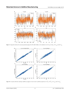 Figure 9. Comparison between the actual and predicted properties of the hybrid lattice in the validation set: (A) E , (B) E , (C) ν xy , and (D) ν yx .