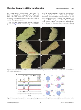 Figure 3. Phase analysis of laser powder bed fusion samples with aging heat treatment. (A) X-ray diffraction pattern. (B) Semi-quantitative analysis results.