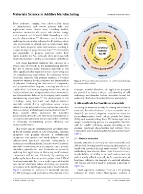 possible to enhance the characteristics and functionalities Figure 1. Overview of functional materials for additive manufacturing