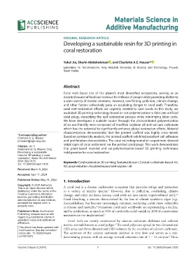 2024;3(2):3125. Keywords: Coral restoration; 3D printing; Sustainable resin; Calcium carbonate-based ink;