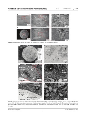 second rings of the Ti64-B4C shell. (E) The boundary between the Ti64 core and the first ring of the Ti64-B4C shell. (F) The Ti64-B4C shell section of the