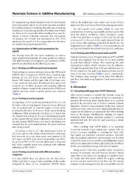 Materials Science in Additive Manufacturing MEX optimization printing of rHPDE from milk jugs