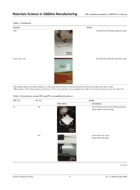 Table 2. Test prints at various PBT and PT on smooth print surfaces