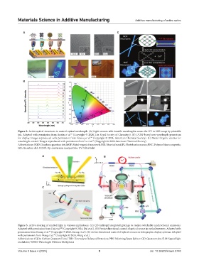 Figure 2. Active optical structures to control optical wavelength. (A) Light sources with tunable wavelengths across the UV to NIR range by printable