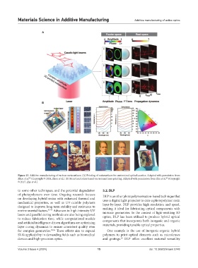 Figure 13. Additive manufacturing of various metasurfaces. (A) Printing of metasurfaces for customized optical caustics. Adapted with permission from