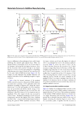 Figure 11. The impact curves of graded triply periodic minimal surface (TPMS) sandwich structures: (A) Force-displacement curves at 7 m/s, (B) force-