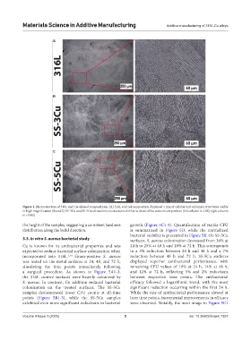 incorporated into 316L. 7,10 Gram-positive S. aureus reduction between 48 h and 72 h. SS-5Cu surfaces