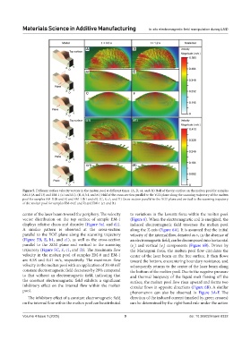 velocity in the molten pool with an application of 39.40 mT subsequently returns to the center of the laser beam along