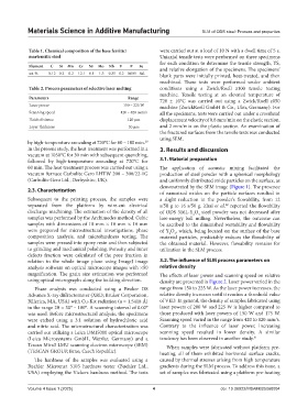 Table 2. Process parameters of selective laser melting conditions using a Zwick/Roell z100 tensile testing