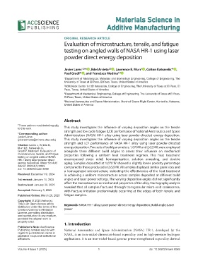 This is an Open-Access article Keywords: NASA HR-1 alloy; Laser power direct energy deposition; Build angle; Laser