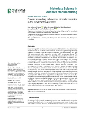 distributed under the terms of the Keywords: Additive manufacturing; Binder jetting; Bimodal powder; Ceramics; Powder