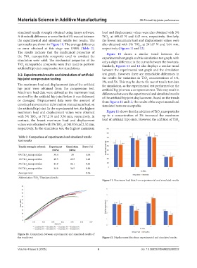 the experimental and simulated tensile test results. The the lowest maximum load and displacement values were