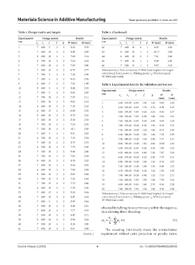 Table 5. Design matrix and targets Table 5. (Continued)