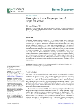Monocytes in tumor: The 1. Introduction
