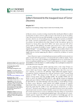 Editors-in-Chief of Tumor Discovery novel ideas for cancer treatment.