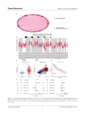 Figure 1. (A) Pyroptosis-related genes interactions in liver cancer. (B) BAK1 expression levels in several cancer types and matching normal