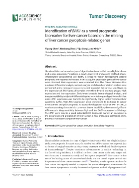 of liver cancer pyroptosis-related   Keywords: BAK1; Liver cancer; Pan-cancer; Immunity; Biomarkers; Prognosis