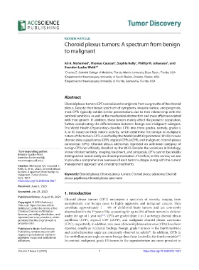 malignant. Tumor Discov, Keywords: Choroid plexus; Choroid plexus tumors; Choroid plexus adenoma; Choroid