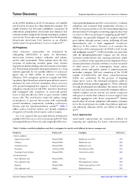 Table 5. Surface-modified polyplexes and their conjugates for nucleic acid delivery in tumor management