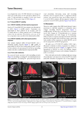 discrepant positive response (Figure 2, right panels), as All eight cases of T2-RECIST stability (100%) had a