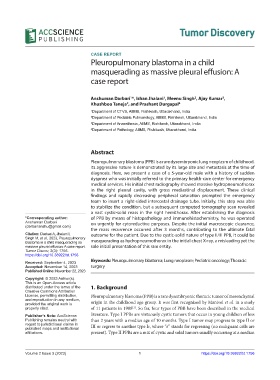 Received: September 4, 2023 Keywords: Pleuropulmonary blastoma; Lung neoplasm; Pediatric oncology; Thoracic