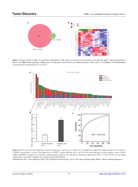 Figure 2. MMP-1 as a potential diagnostic marker for early gastric cancer: (A) A search of TCGA database revealed that high expression of or mutations