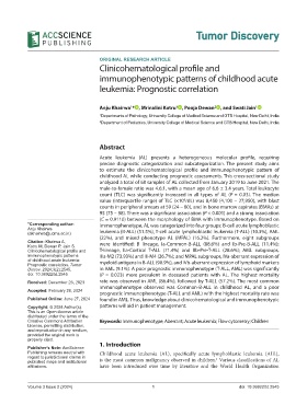 *Corresponding author: immunophenotype, AL was categorized into four groups: B-cell acute lymphoblastic