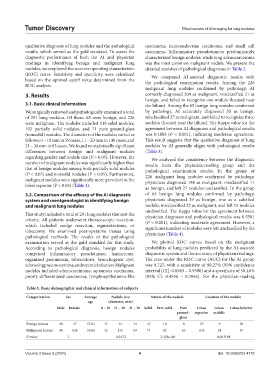 nodules, we employed the receiver operating characteristic detailed statistics of pathological diagnoses in Table 2.