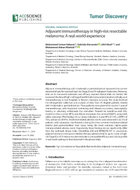 distributed under the terms of the Keywords: High-risk melanoma; Resectable; Real-world data; Adjuvant; Immunotherapy