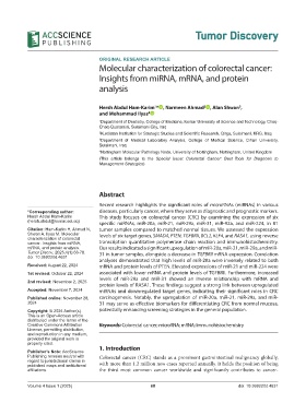 Creative Commons Attribution Keywords: Colorectal cancer; microRNA; mRNA; Immunohistochemistry