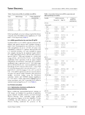 Table 1. Expression profiles of candidate microRNAs Table 2. Association between microRNAs expression and