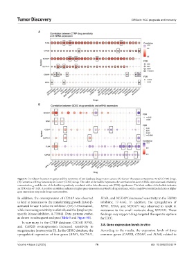 (B) Genomics of Drug Sensitivity in Cancer (GDSC) drugs. The color of the bubble represents the correlation between mRNA expression and inhibitory