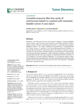 Köstek O. Complete response after Keywords: Metastatic urothelial carcinoma; Enfortumab vedotin; Complete response